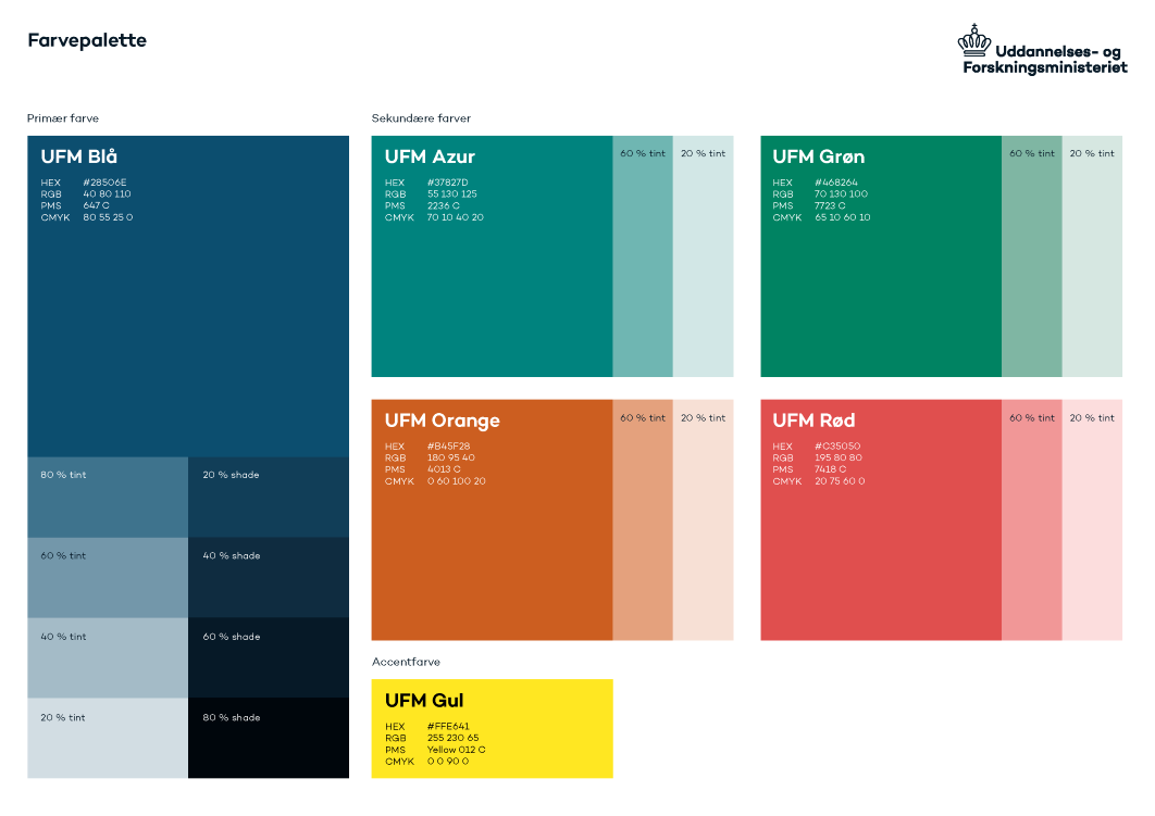 Designguiden giver et indblik i Uddannelses- og Forskningsministeriets visuelle identitet. Her kan du se, hvilke grafiske elementer der indgår, og finde retningslinjer for, hvordan de bruges. Du finder også logoer, der ligger frit tilgængeligt til download.