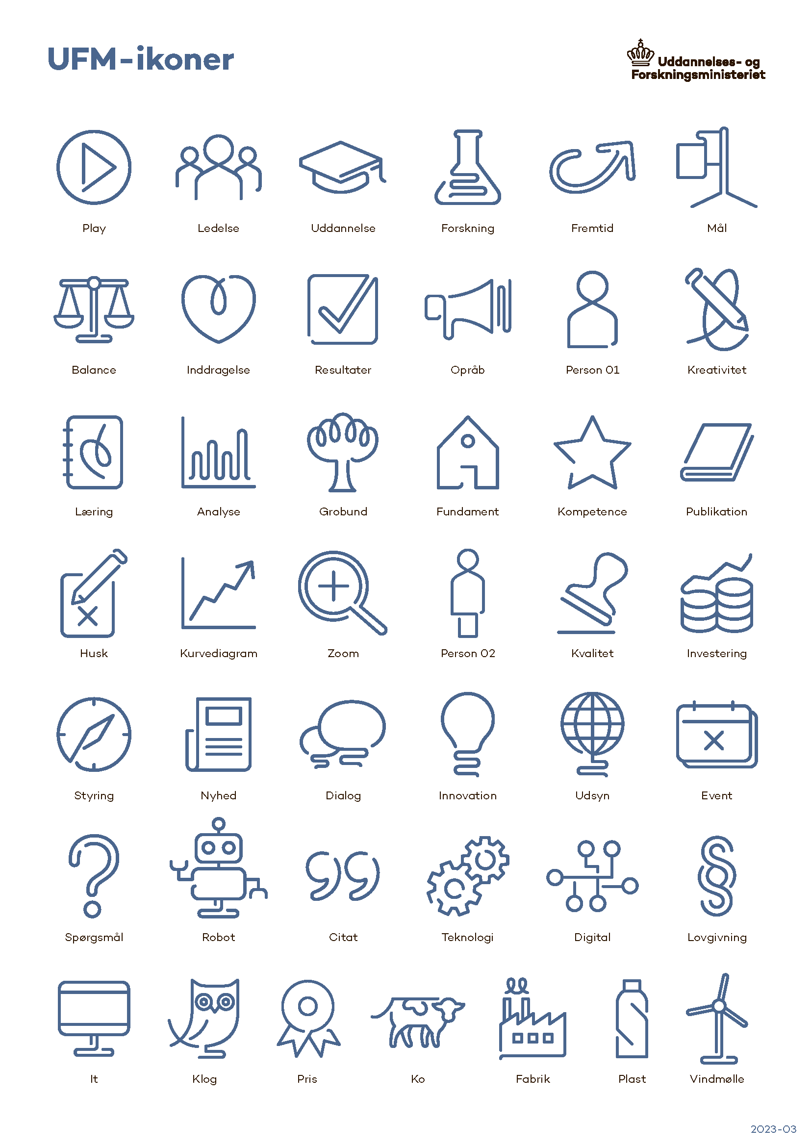 Har du brug for ikoner, kan du skrive til Uddannelses- og Forskningsministeriet på design@ufm.dk